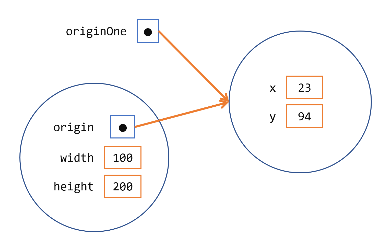 Point originOne = new Point(23, 94);이 문을 실행한 결과는 다음 그림에서 확인할 수 있습니다: